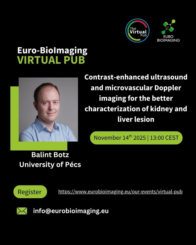 Please join us for the Virtual Pub on November 14, 2025 at 13:00 CET. We welcome Balint Botz, University of Pécs, for a talk on "Contrast-enhanced ultrasound and microvascular Doppler imaging for the better characterization of kidney and liver lesion."