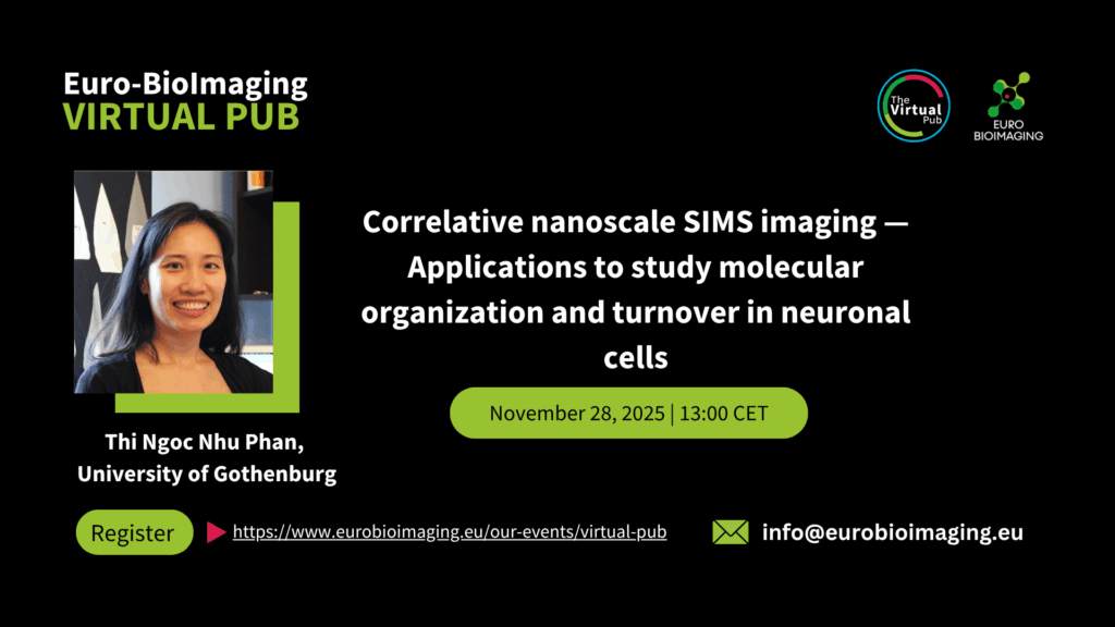 Please join us for the Virtual Pub on November 28, 2025 at 13:00 CET. We welcome Thi Ngoc Nhu Phan, University of Gothenburg, for a talk on "Correlative nanoscale SIMS imaging — Applications to study molecular organization and turnover in neuronal cells."