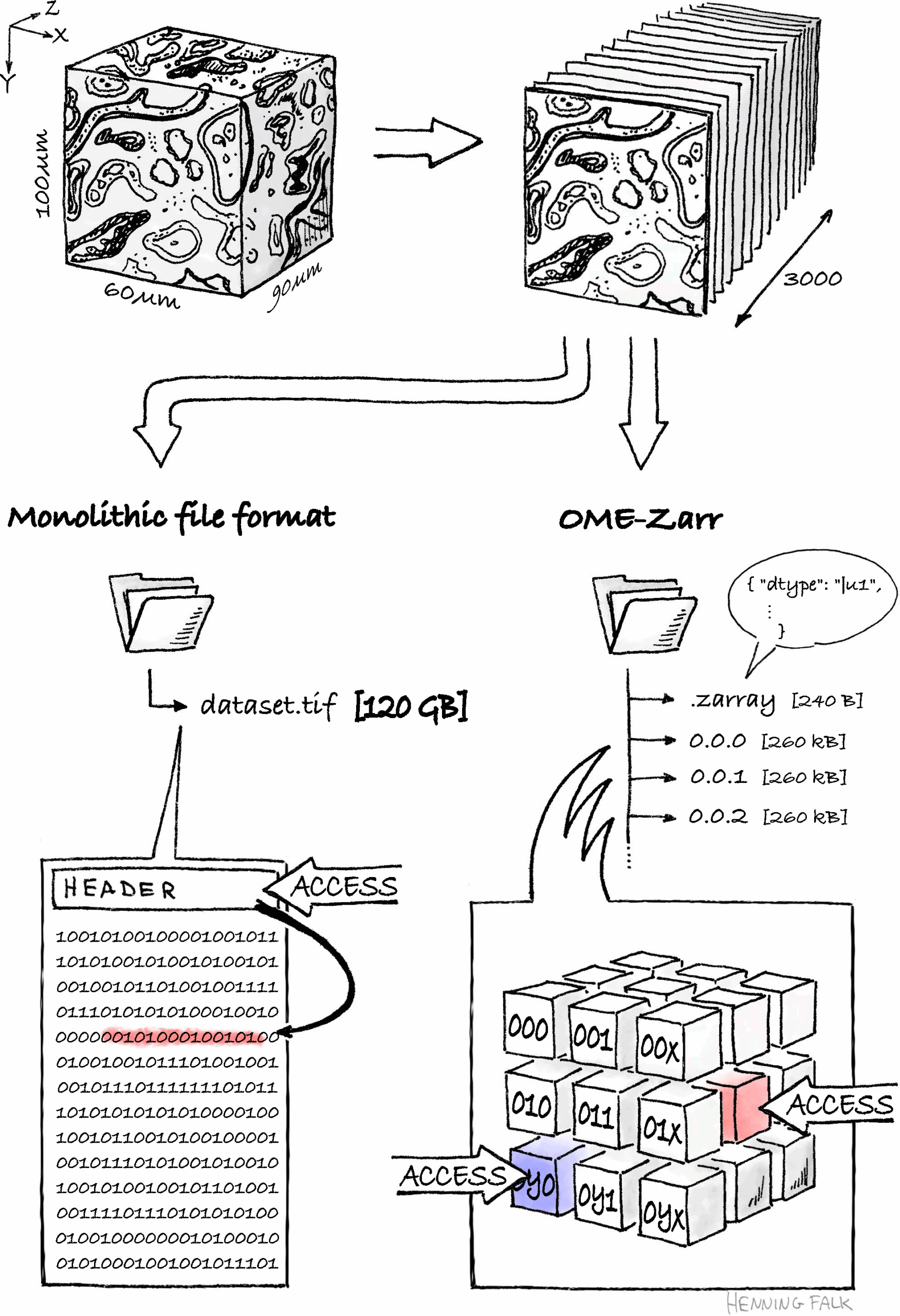 A detailed comparison of OME-Zarr’s superior access performance versus traditional file formats is available for those interested in technical specifics here.