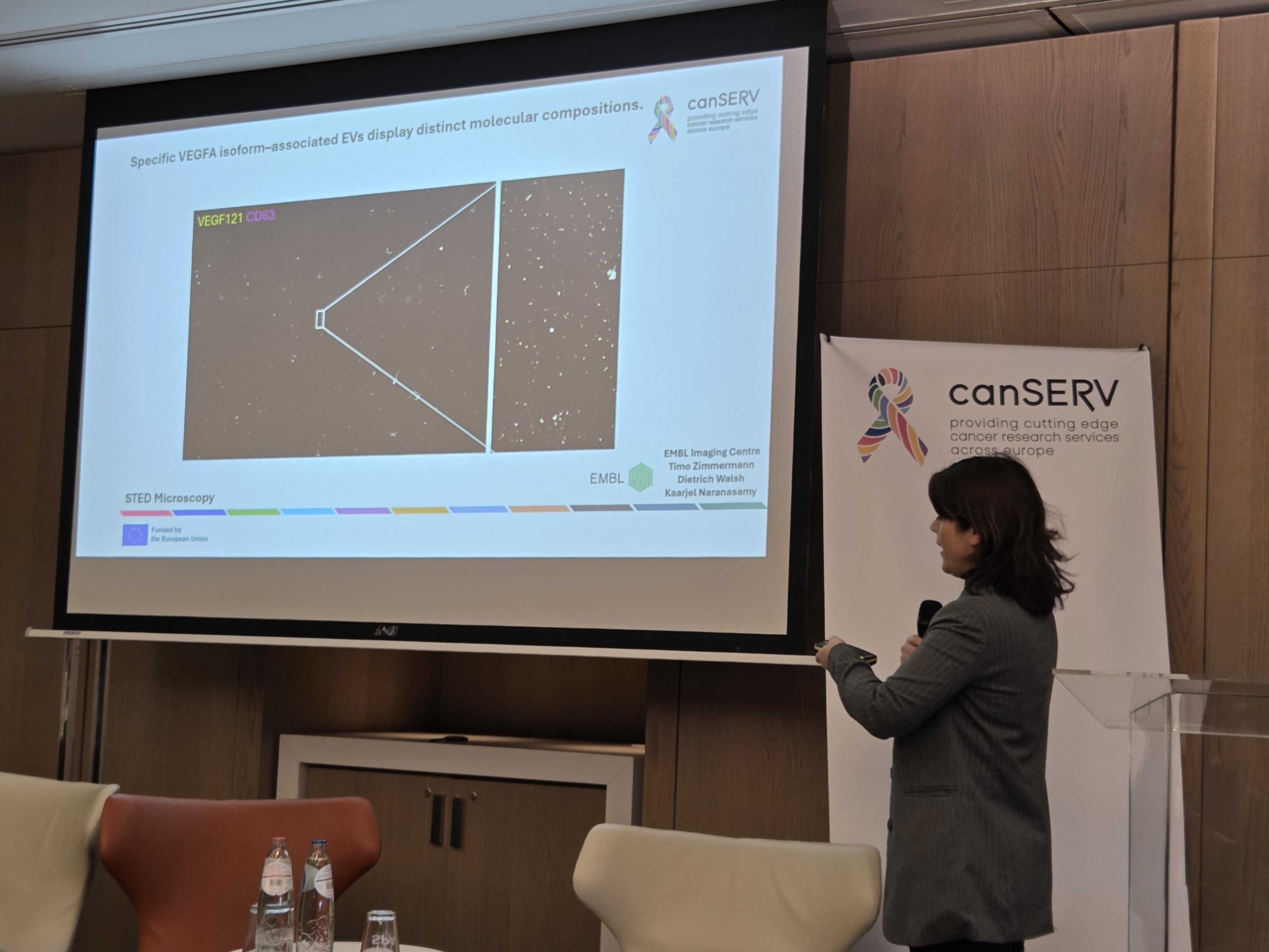 Elly Soltani (UMC Utrecht, Netherlands) explored the molecular and structural landscape of VEGFA-carrying extracellular vesicles in colorectal cancer. Her project combined Euro-BioImaging and Instruct ERIC services, including super-resolution imaging at the EMBL Node of Euro-BioImaging with proteomics services provided by the CEITEC Brno Centre of Instruct, to link molecular detail with structural insights.