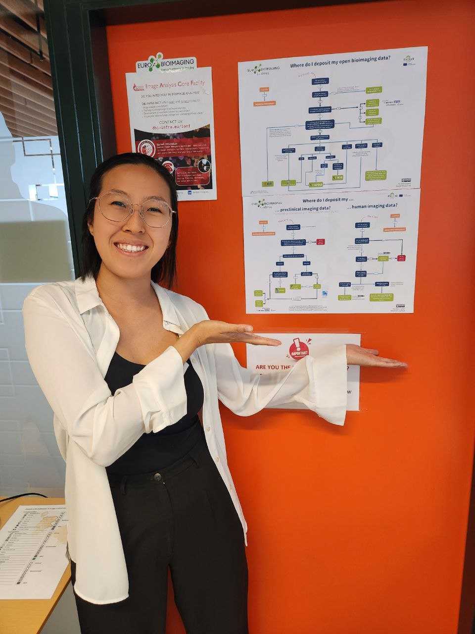 From providing open services in image analysis to life scientists and medical researchers, to organising training classes, Tricia Loo helps researchers visualize, analyze, and extract quantitative information out of their bioimaging datasets and much more! Here she is pictured with the Image Data Repository Decision Tree.