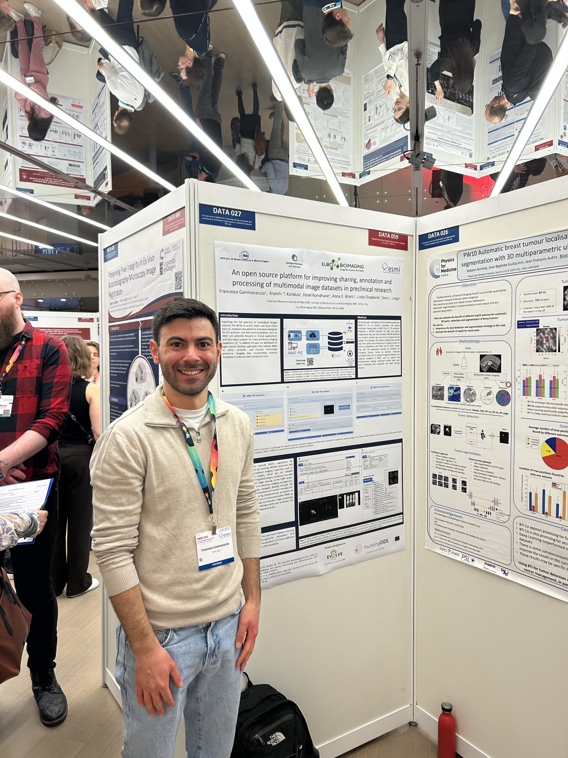 At the Med Hub, our colleagues Dario Livio Longo and Francesco Gammaraccio made notable contributions. Dario presented the opportunities offered by the foundingGIDE project during the Standardisation Study Group session, contributing to important discussions on upcoming standardisation initiatives. Francesco presented a poster on the developed XNAT-PIC tool under EVOLVE project, an open-source solution for improving the sharing, annotation, and processing of multimodal imaging datasets in preclinical research, highlighting new features supporting optical and photoacoustic imaging management.