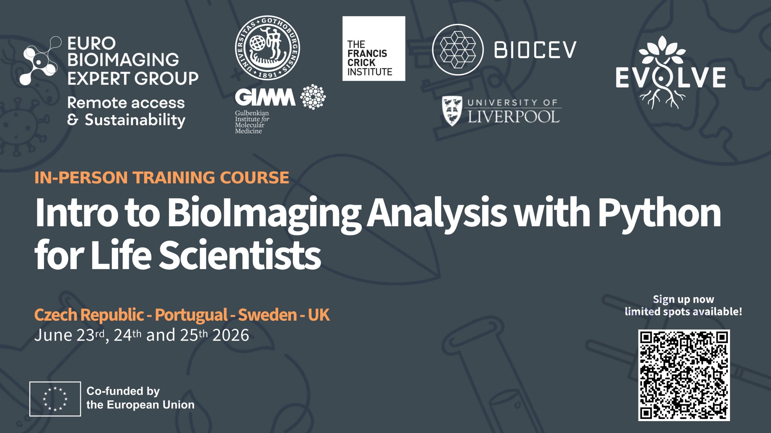 After a very successful first edition, Euro-BioImaging is proud to announce the second edition of the distributed training course for "Intro to BioImage Analysis with Python for Life Scientists" from June 23rd to 25th 2026. This course is jointly organised by four Euro-BioImaging Nodes and will be run at four connected training centres that are part of Euro-BioImaging: