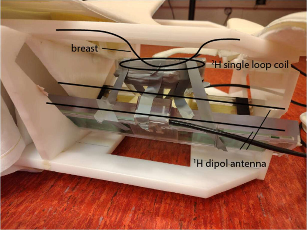 Working closely with the Utrecht UMC team, the project developed a coil configuration and acquisition workflow for unilateral breast scans at 7T, integrating transmit and receive elements for both 2H and 1H imaging. After phantom testing, a series of feasibility scans were acquired from healthy volunteers both at natural deuterium abundance and following oral administration of 2H-labelled glucose.