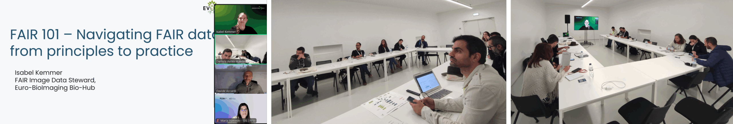Unlike common hybrid events, where on-site activities are live-streamed for remote participants, who often feel less engaged, this workshop took a different approach. The trainer, Euro-BioImaging’s FAIR Image Data Steward, joined remotely to deliver lectures and moderate discussions across locations. Inputs and interactions from both locations were integrated in real time through live polling tools, ensuring equal participation and an inclusive debate.