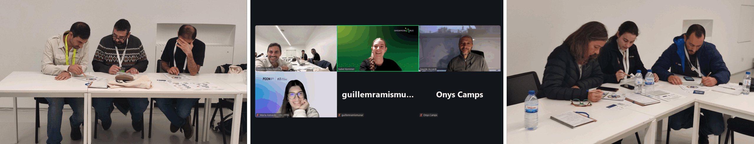 For the collaborative exercises, on-site participants worked in small groups using pen and paper, with local facilitators providing technical support and coordinating the exercises. Simultaneously, online participants collaborated in similarly sized breakout rooms, using digital tools for the same tasks before regrouping with onsite colleagues for a shared discussion of the results.