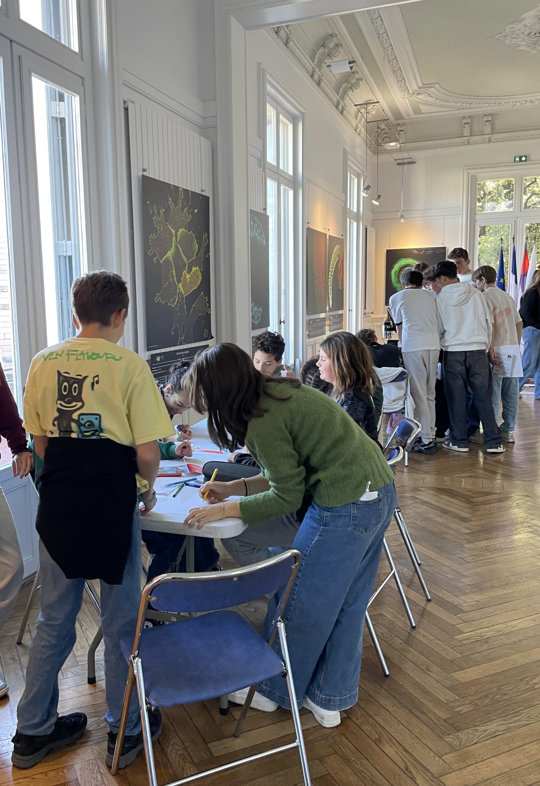 The journey started under the warm September sun. Hosted at Montpellier’s Maison des Relations Internationales during the “What a Trip!” festival, the exhibition invited visitors to embark on a visual journey through the microscopic world. Over four days, nearly 800 visitors explored the gallery, discovering how imaging can transform our perception of living systems. The event successfully blended art, science, and emotion—making the invisible visible to all.