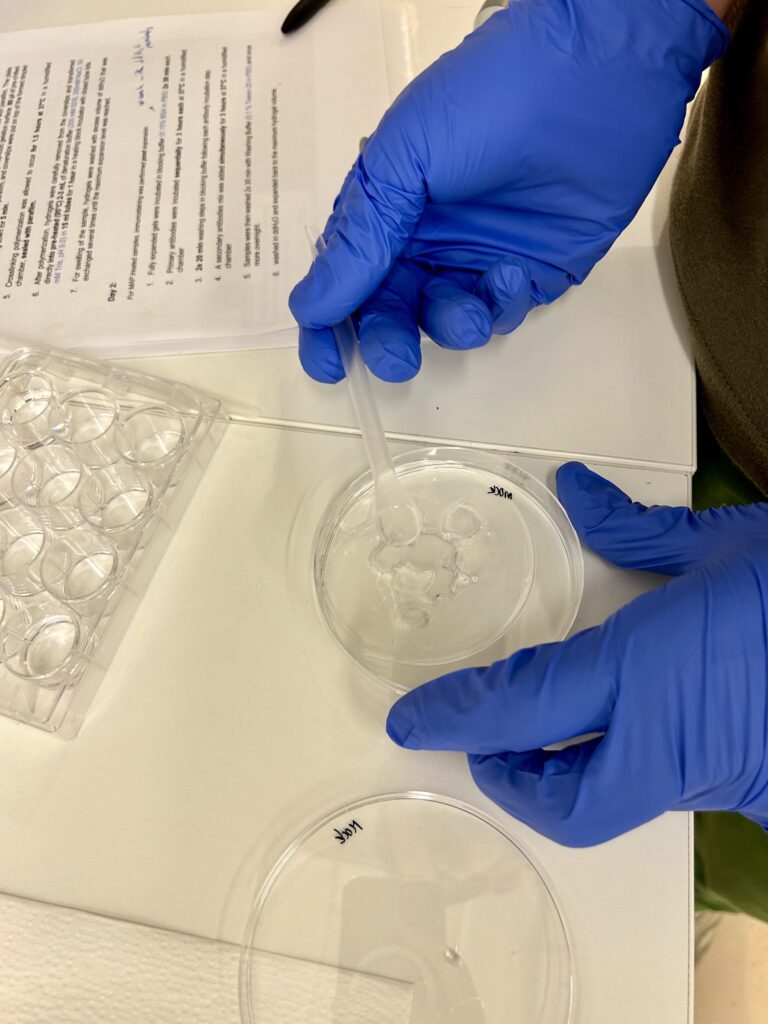 Sample preparation – The visitor tries working with the gels, based on what Ana prepared. By the end of the day, the visitor will understand how to go from a fixed mammalian cell preparation to cast and label a gel. In the meantime, Ana & her team prepare some mock gels for the visitor to handle and expand on Day 2.