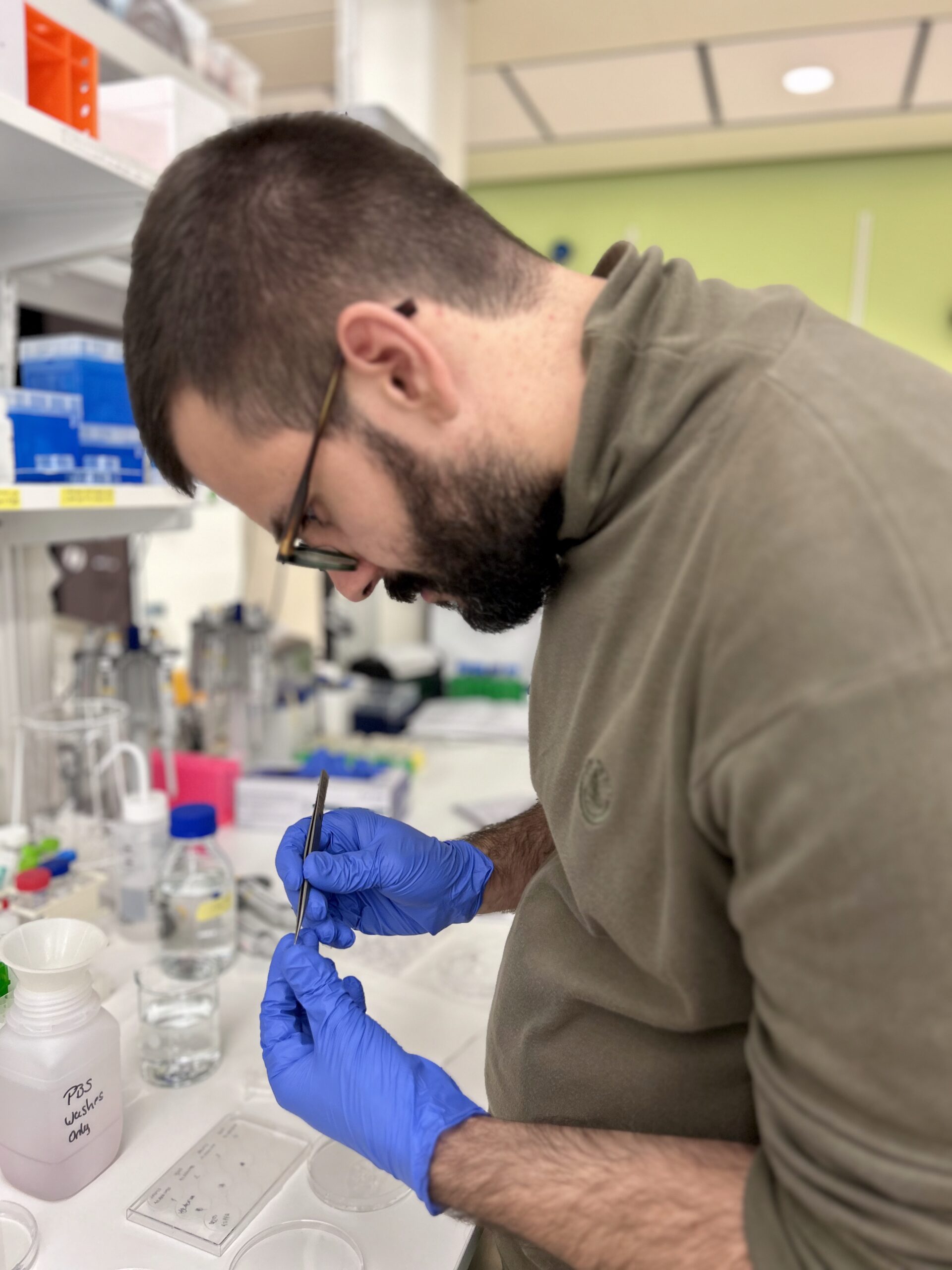 At the Bilbao Node, where Diego has been working since early 2025, the team uses several Expansion Microscopy protocols, but weren’t thrilled with their results. When Diego heard about the EVOLVE job shadowing programme, he saw it as an opportunity to benefit from the vast experience of other Node staff within Euro-BioImaging, to learn more about ExM.