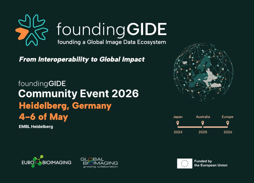 This two-year milestone reflects not only scientific and technical progress, but a global movement shaped by researchers, infrastructure providers, policy networks, and global imaging communities. As project partner David Poger noted, foundingGIDE is fundamentally "a global, multipartite, community-endorsed effort towards standardization of image metadata”. With two community events in Japan (2024) and Australia (2025), and a third and final one approaching in Heidelberg in May 2026, foundingGIDE has transformed from a concept into a coordinated, community-driven ecosystem-building effort.