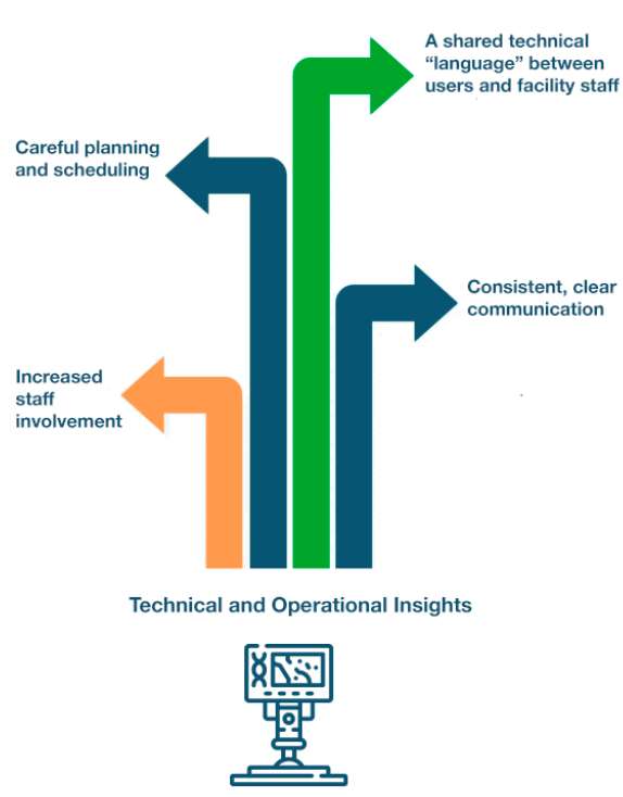 Across discussions, participants agreed that remote access is technically feasible for most imaging workflows, but it places particular demands on operations. Successful remote collaboration requires increased staff involvement, careful planning and scheduling, consistent and clear communication, and the development of a shared technical “language” between users and facility staff. Many facilities noted that hybrid models where an initial onsite visit is followed by sustained remote collaboration are especially effective for building trust and ensuring users understand the workflow.