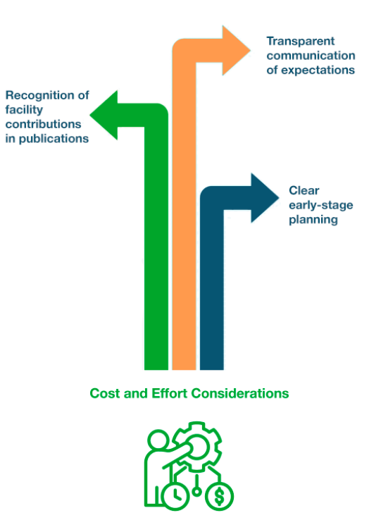 Last but not least, cost and effort considerations also featured prominently in the discussion. Several facilities observed that the cost of remote and onsite access is often similar, since staff must operate instruments in both cases. As a result, the focus shifts to ensuring clarity from the start: establishing expectations early, communicating workflows transparently, and agreeing on how facility staff contributions will be acknowledged in publications.